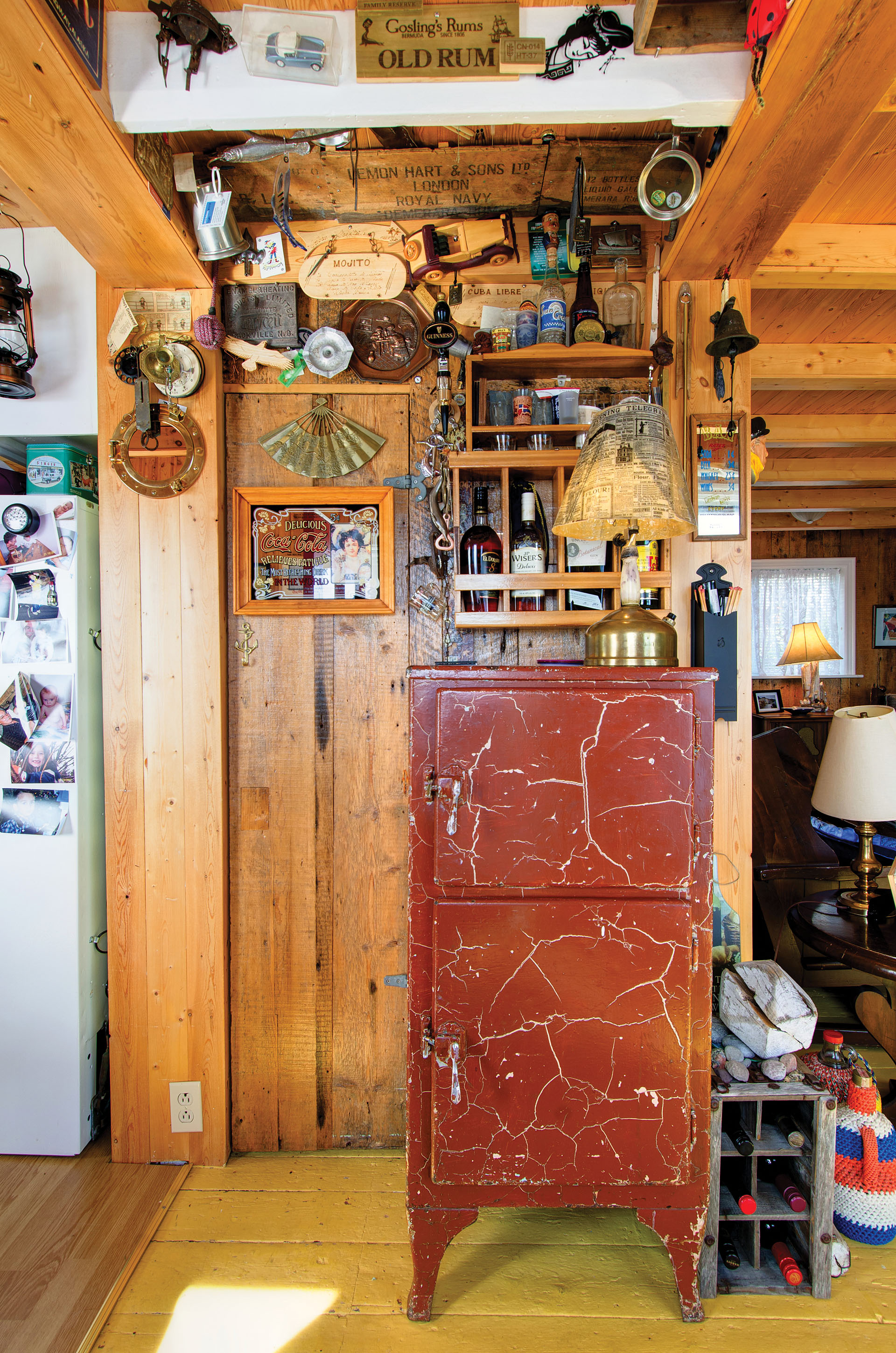 When they bought the place, Bill took it apart from the inside, rebuilding the cabin over the course of years. He left the exterior walls up, but nearly everything else was reworked. He removed layers and layers of wallpaper, then a hardboard liner, then newspaper, before finally getting to the large pine boards that made up the walls. Some of the boards are a foot or more across, far larger than any pine tree found in Newfoundland these days – but these trees didn’t come from around here, says Bill. Back in the day, ships would sail up from the Carolinas, down in the southern United States, loaded with pine boards used as ballast. They would load up on fish in Placentia Bay and sell the boards to people living in places like Sound Island, where the large boards would be turned into houses.