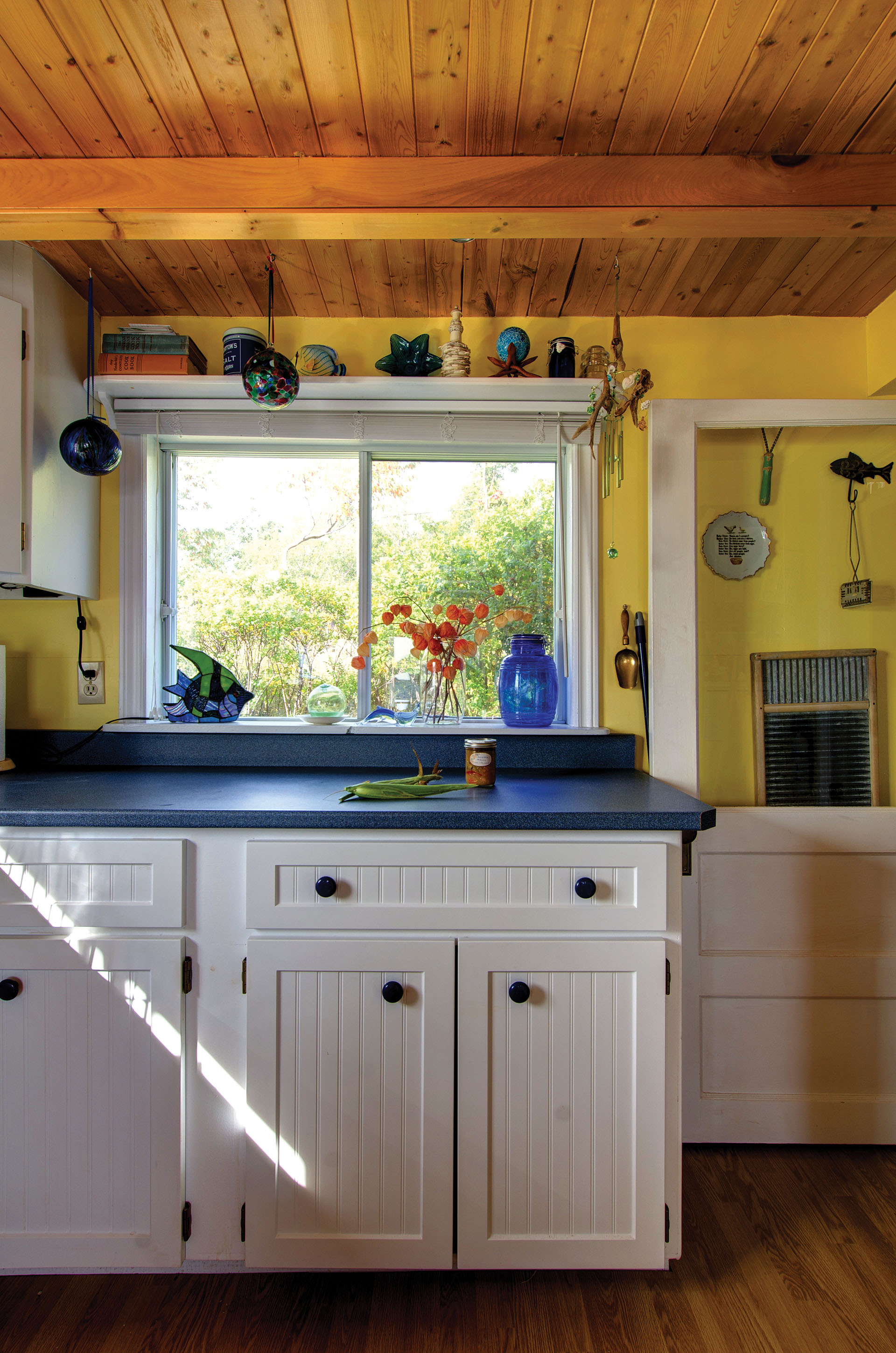They made an effort to keep the original character of the house, while also updating it for their own needs. Aside from the aforementioned renovations, they also added a wood stove and put in a new kitchen. They did much of the work themselves, including building the kitchen cabinets.