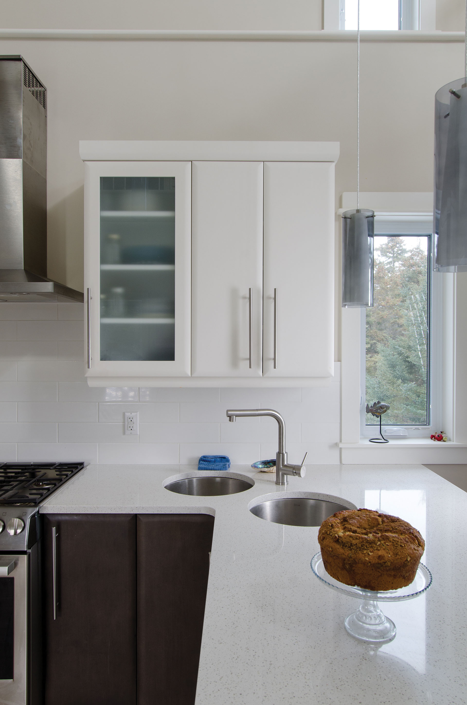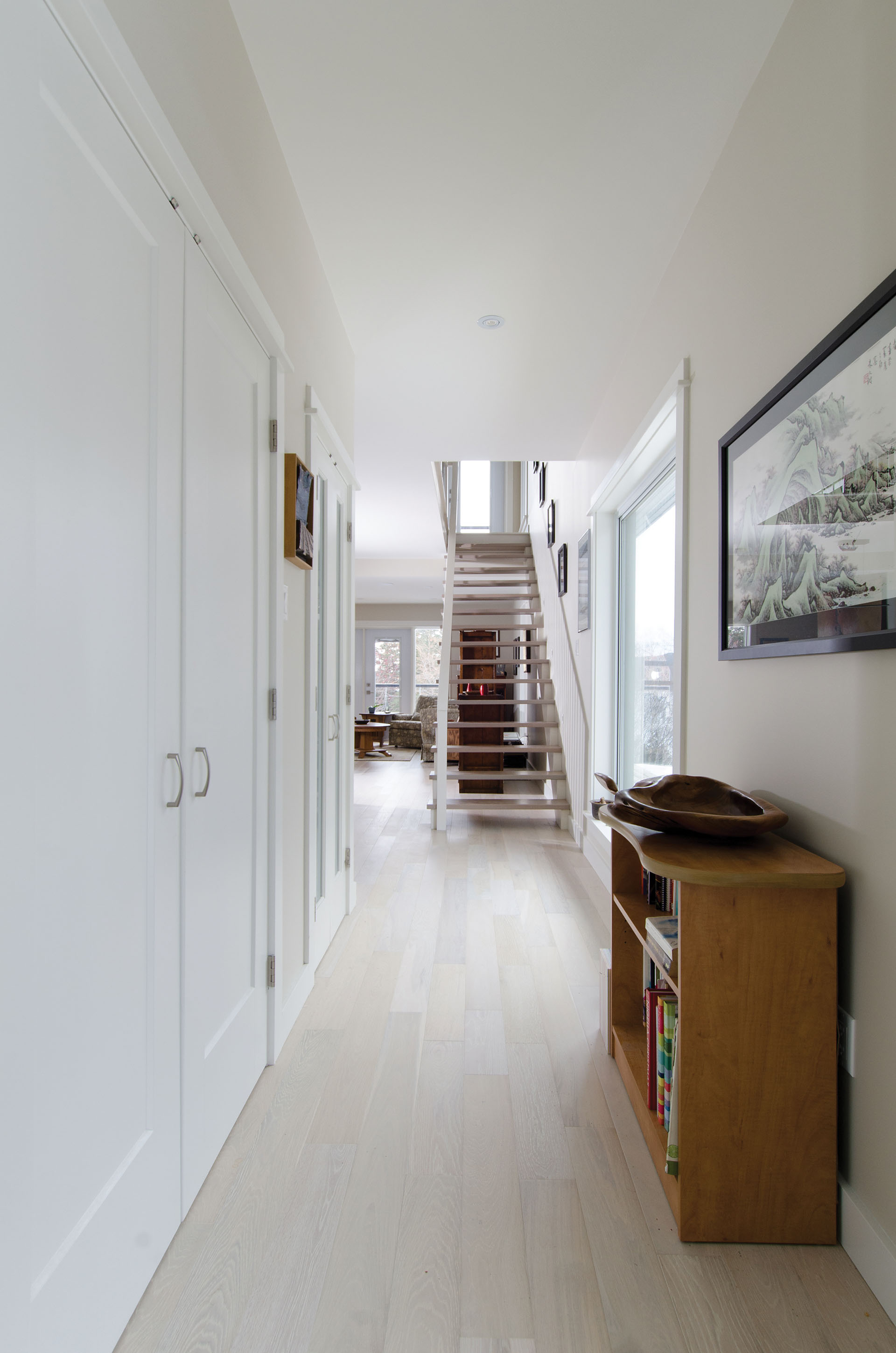 Keeping with the contemporary feel of the space, the house has no mouldings, and the trim was chosen to maintain the feel of a contemporary house. “Those things are really important to us because they convey a lot of the experience of the inside of a house,” says Taryn.
