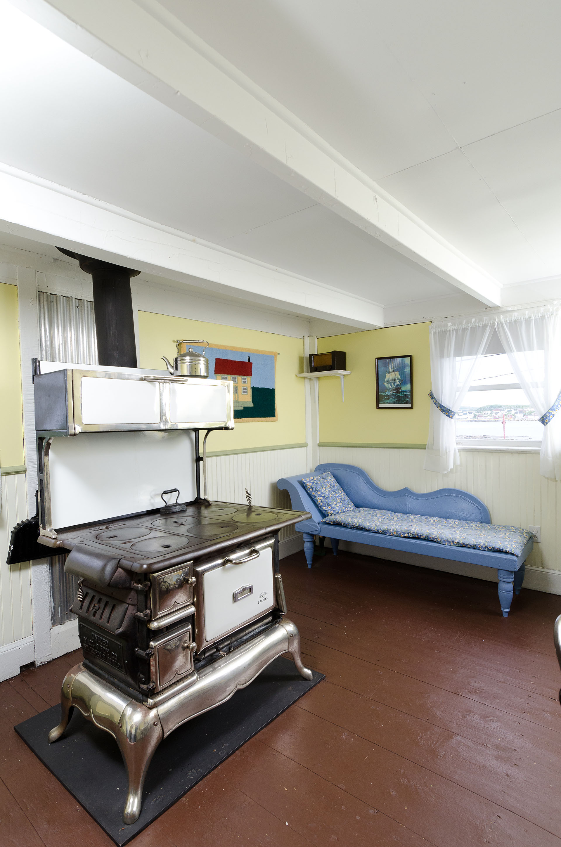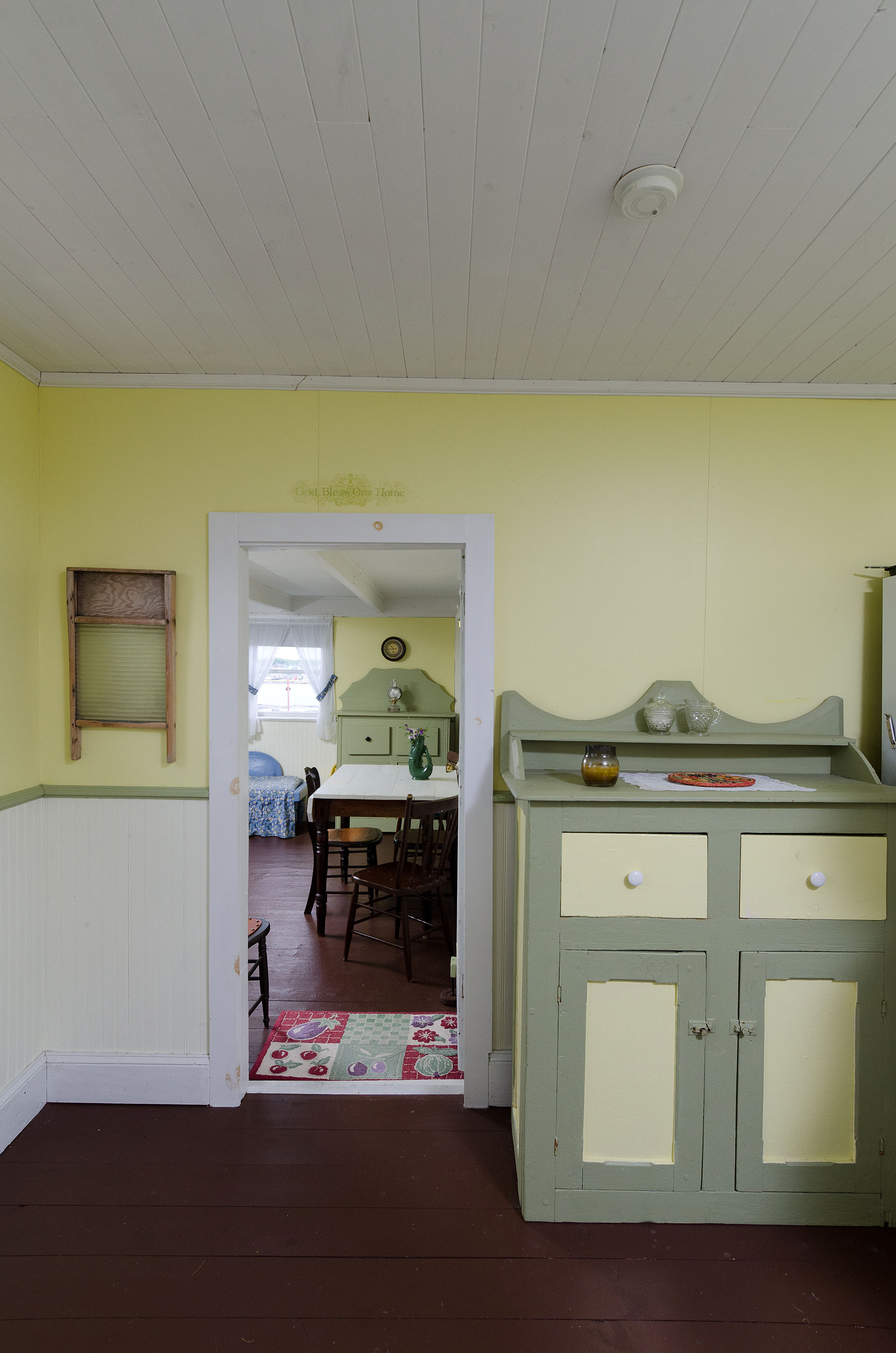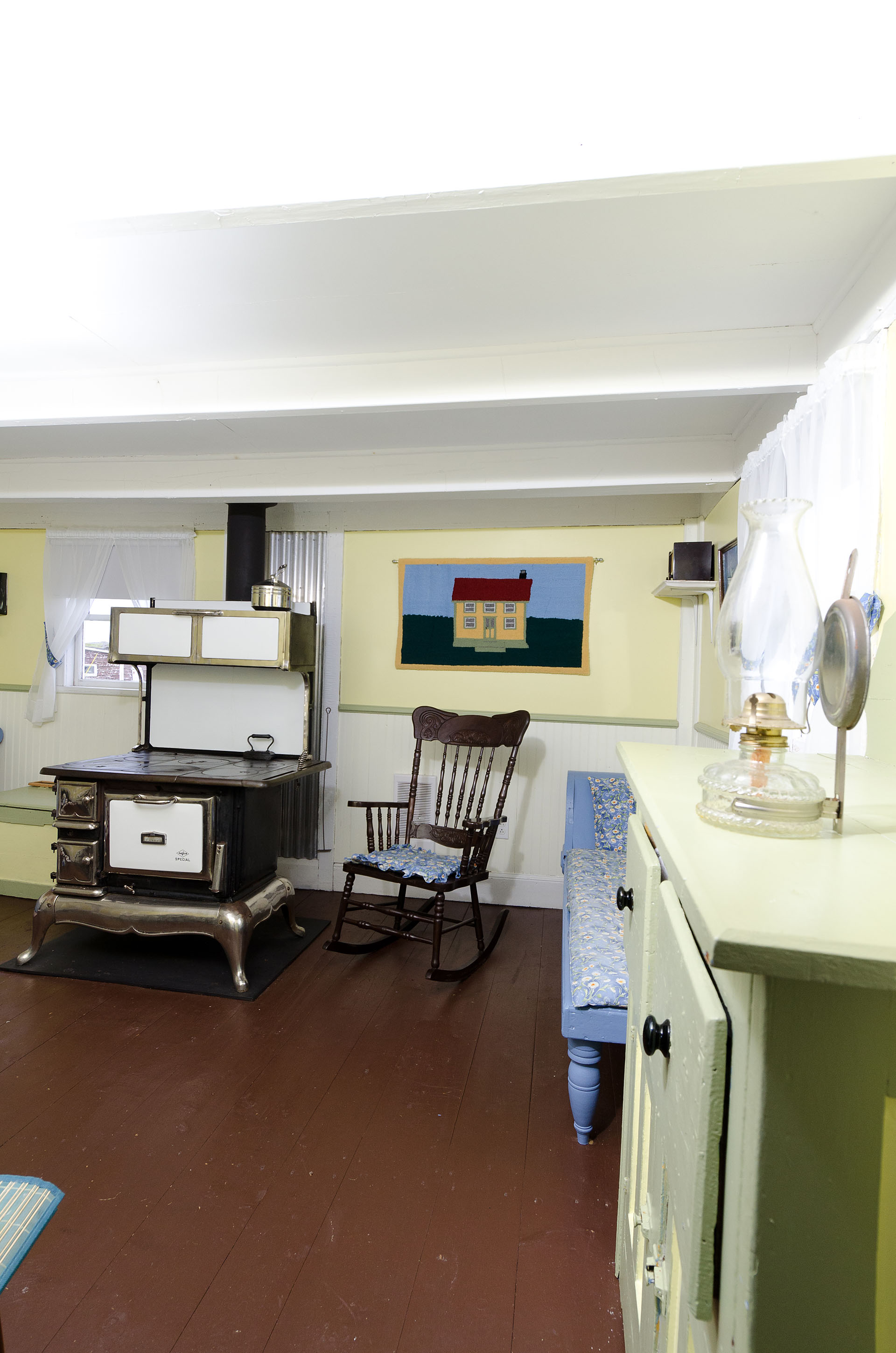 Sitting in the other front room off the kitchen, it’s easy to imagine what life was like more than 100 years ago – mostly because the room looks the same as it did then. Two daybeds, made by Aiden’s grandfather, sit across from each other. A kerosene lamp tops a sideboard, also built by the original homeowner, although electric lights now provide nighttime illumination.